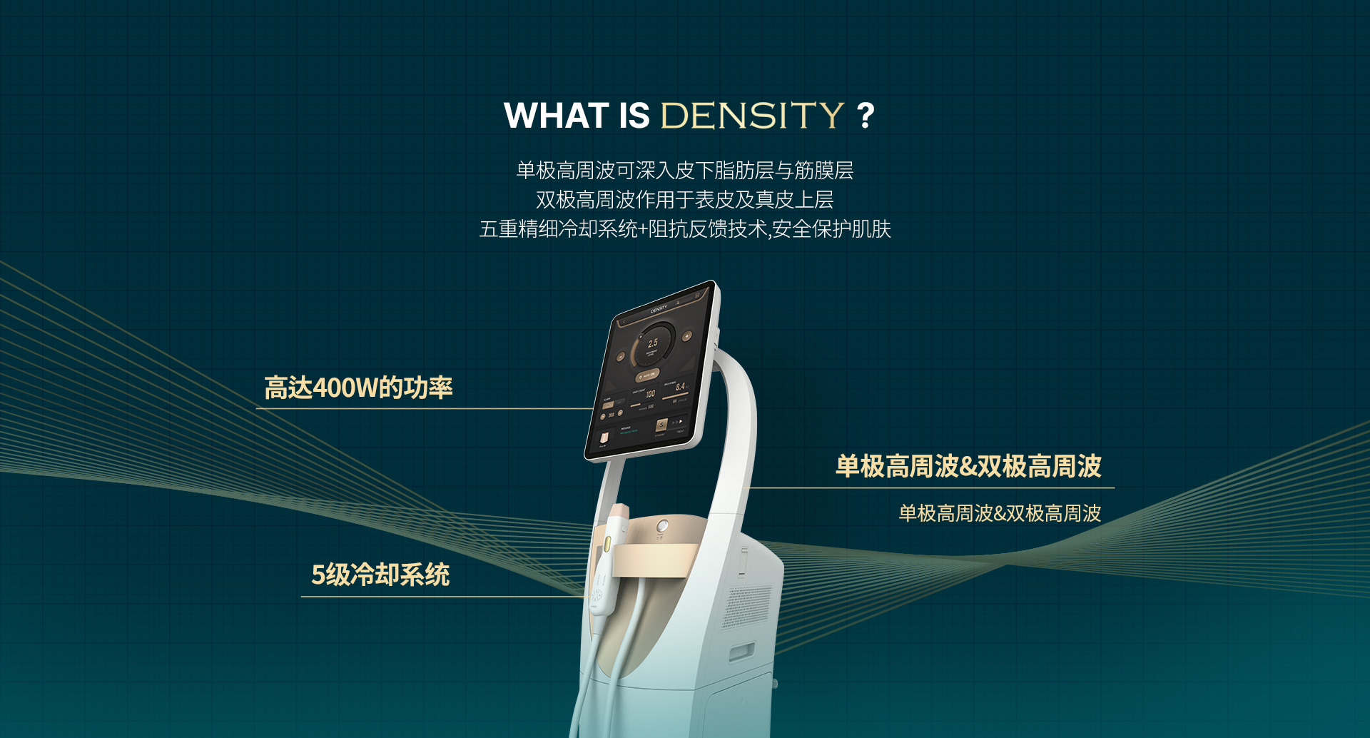 DENSITY是一款结合了单极 (Monopolar) 和双极 (Bipolar) 高频电流的提升术。它拥有精细的冷却系统以及阻抗反馈技术。